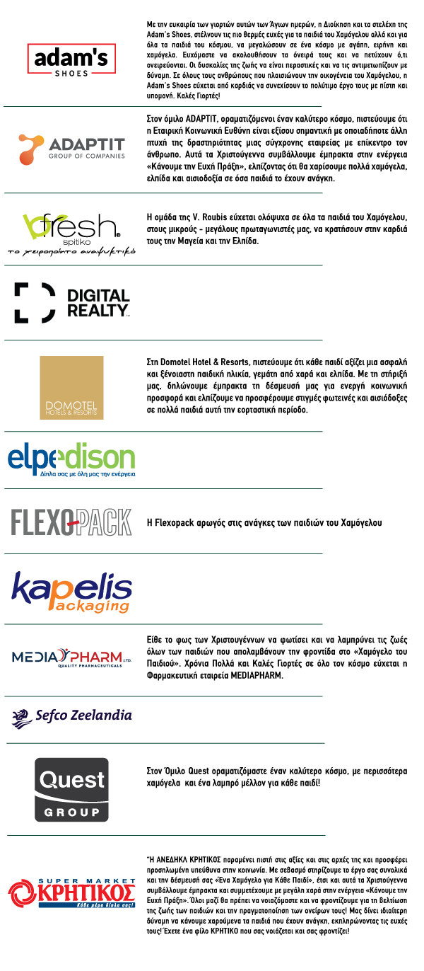 Ο Σύλλογος δεν φέρει καμία ευθύνη για το περιεχόμενο που αναρτά εκτός της σελίδας www.hamogelo.gr οποιοσδήποτε τρίτος και αφορά σε ενέργεια που διοργανώνει ο ίδιος με στόχο την εξεύρεση πόρων για την ενίσχυση των σκοπών του Συλλόγου.
