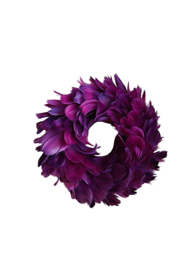 Διακοσμητικό χριστουγεννιάτικο στεφάνι με φτερά polyfoam σε μωβ αποχρώσεις.