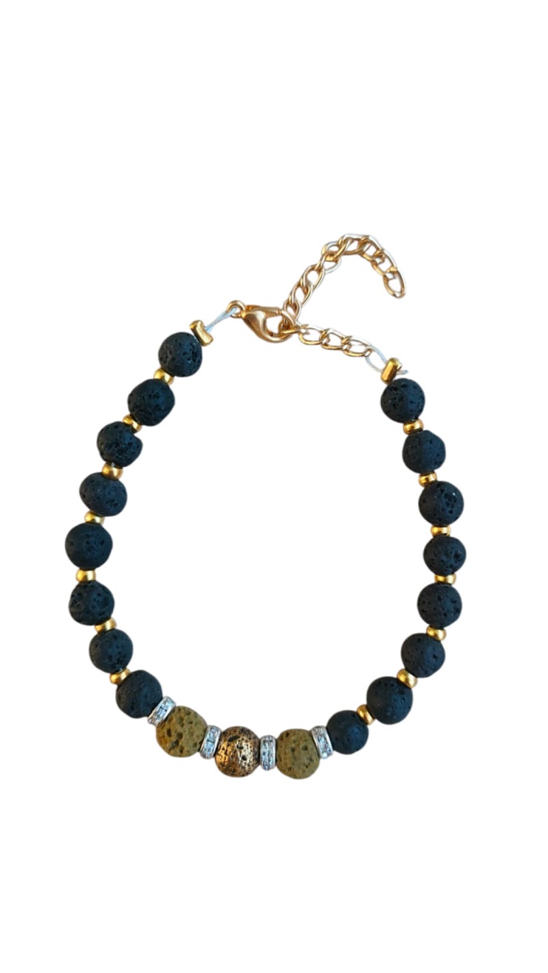 Χειροποίητο βραχιόλι με πέτρες λάβας και χάντρες στρας. Ρυθμιζόμενο κλείσιμο. Συσκευασία Δώρου. Δημιουργία της ομάδας του Εθελοντικού Εργαστηρίου του Οργανισμού μας.