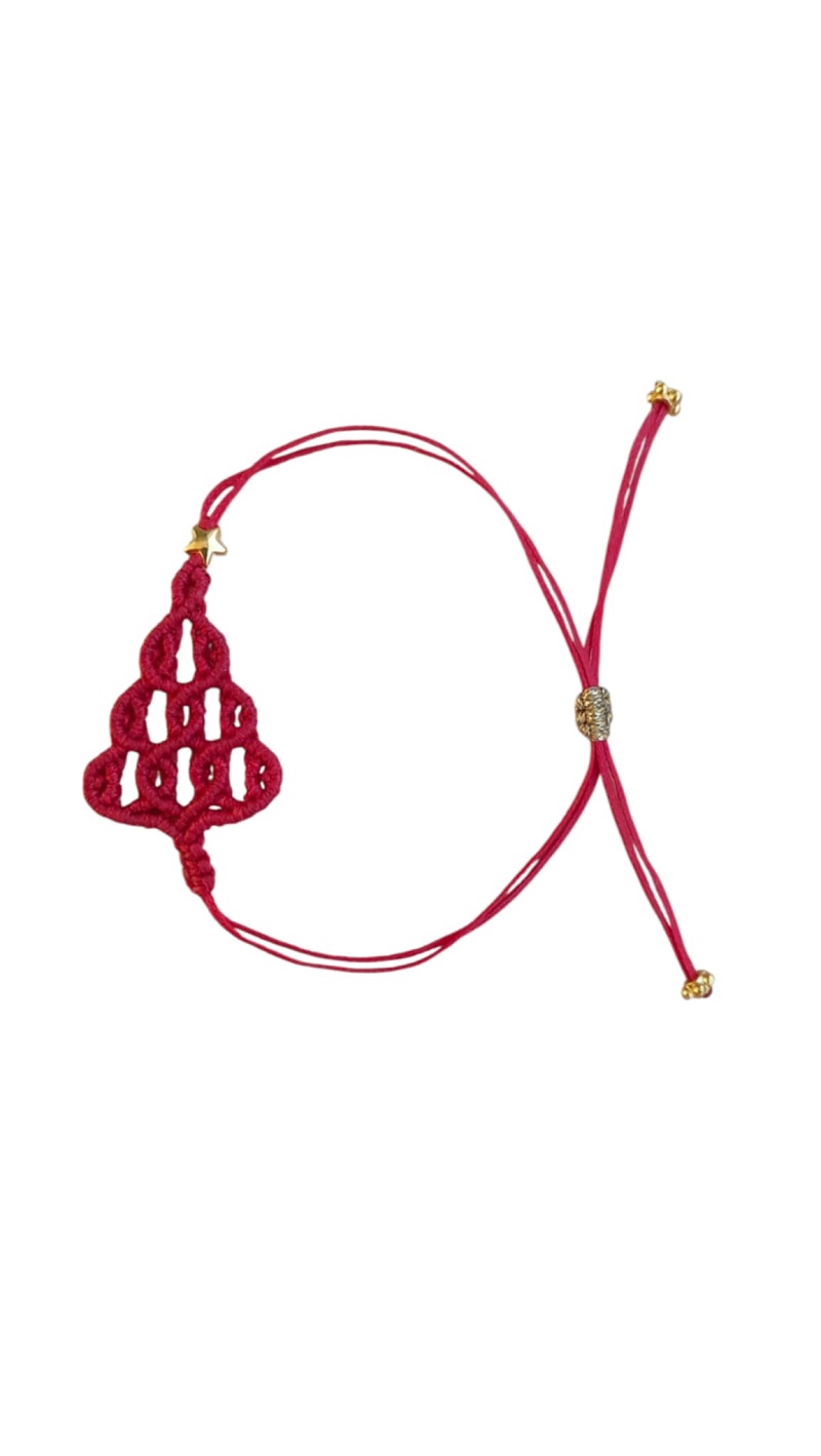 Βραχιόλι Μακραμέ Χριστουγεννιάτικο Δεντράκι Κόκκινο