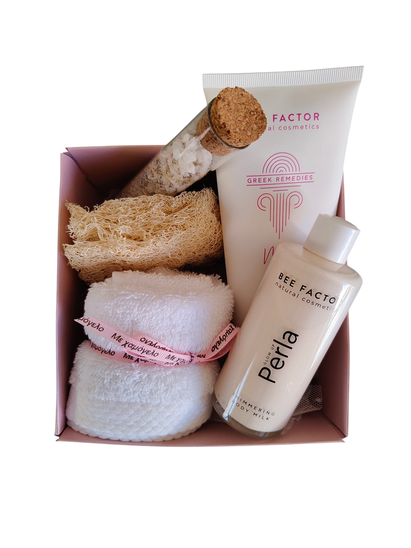 -Glow Up Perla Shimmering Body Milk: ένα λαμπερό γαλάκτωμα σώματος σχεδιασμένο να φωτίζει την επιδερμίδα με μια φίνα, περλέ αντανάκλαση που αναδεικνύει το δέρμα χωρίς υπερβολή. Η σύνθεσή του συνδυάζει ενυδατικούς και θρεπτικούς παράγοντες με εξαιρετικά λεπτά ιριδίζοντα μέταλλα, προσφέροντας άμεσο οπτικό αποτέλεσμα λάμψης, ενώ ταυτόχρονα περιποιείται σε βάθος την επιδερμίδα. Απορροφάται άμεσα, δεν βαραίνει, δεν κολλάει και δεν μεταφέρεται στα ρούχα. Ιδανικό για ιδιαίτερες στιγμές, γάμο, events ή απλώς όταν θέλεις το δέρμα σου να εκπέμπει φως, 100ml (προσφορά της εταιρείας Φυσικών καλλυντικών Bee Factor Natural Cosmetics)