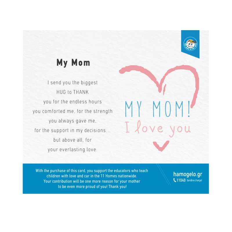 With the purchase of this e-card, you support "The Smile of the Child” in covering the needs of women who strive to overcome difficulties and raise their children alone throughout Greece.