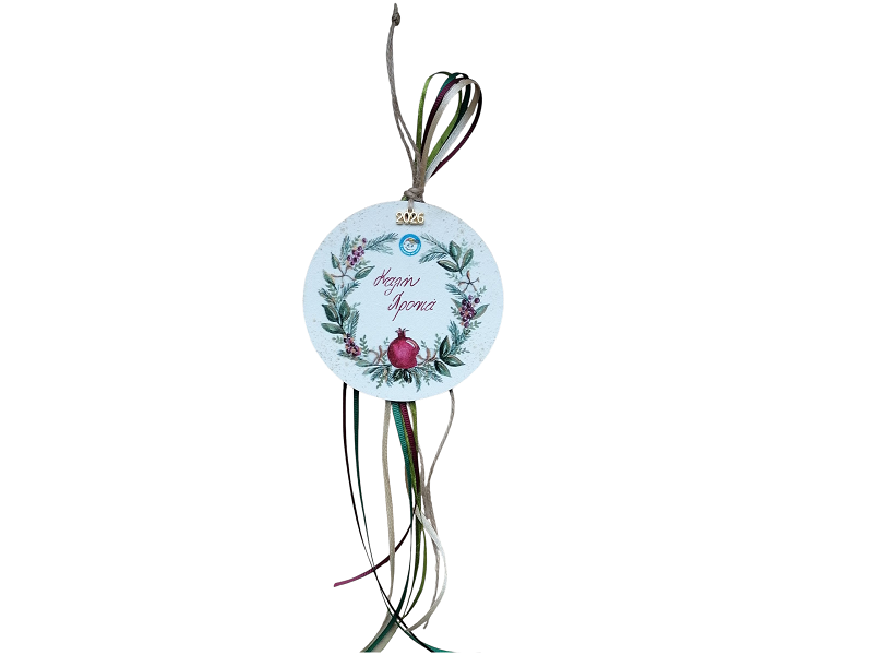 Γούρι στολίδι κρεμαστό, με ξύλινο διακοσμητικό με χριστουγεννιάτικο θέμα, στολισμένο με κορδέλες σε διάφορα χρώματα και μεταλλικο χρυσό μοτίφ 2026. Διατίθεται σε συσκευασία δώρου.  Δημιουργία της ομάδας του Εθελοντικού Εργαστηρίου του Οργανισμού μας.