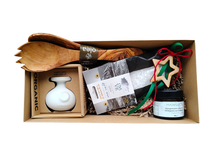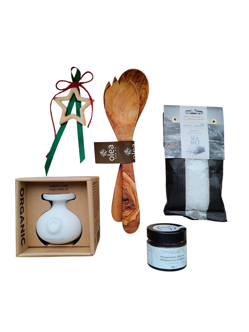 Πακέτο δώρου με ελληνικά προϊόντα που περιλαμβάνει: