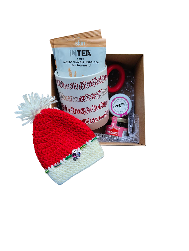 Πακέτο Δώρου "Γλυκά Χριστούγεννα" Με Πλεκτό Στολίδι Σκουφάκι