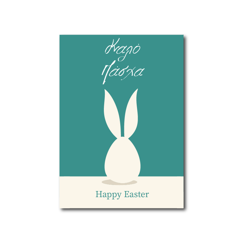 Ευχετήρια κάρτα για το Πάσχα. Η κάρτα είναι δίφυλλη με διάσταση 12 Χ 16,8 εκ. (κλειστή) και είναι εκτυπωμένη σε χαρτί velvet 300 γραμμαρίων. Κενή εσωτερικά για να γράψετε τις δικές σας ευχές. Περιλαμβάνεται λευκός φάκελος.