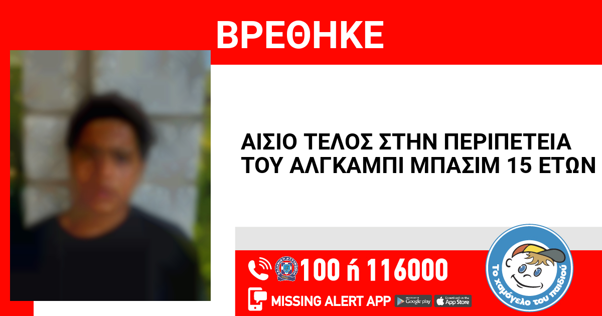 Η περιπέτεια Αλγκάμπι Μπασίμ 15 ετών, έληξε σήμερα 16/10/2025 καθώς επέστρεψε και είναι καλά στην υγεία του.