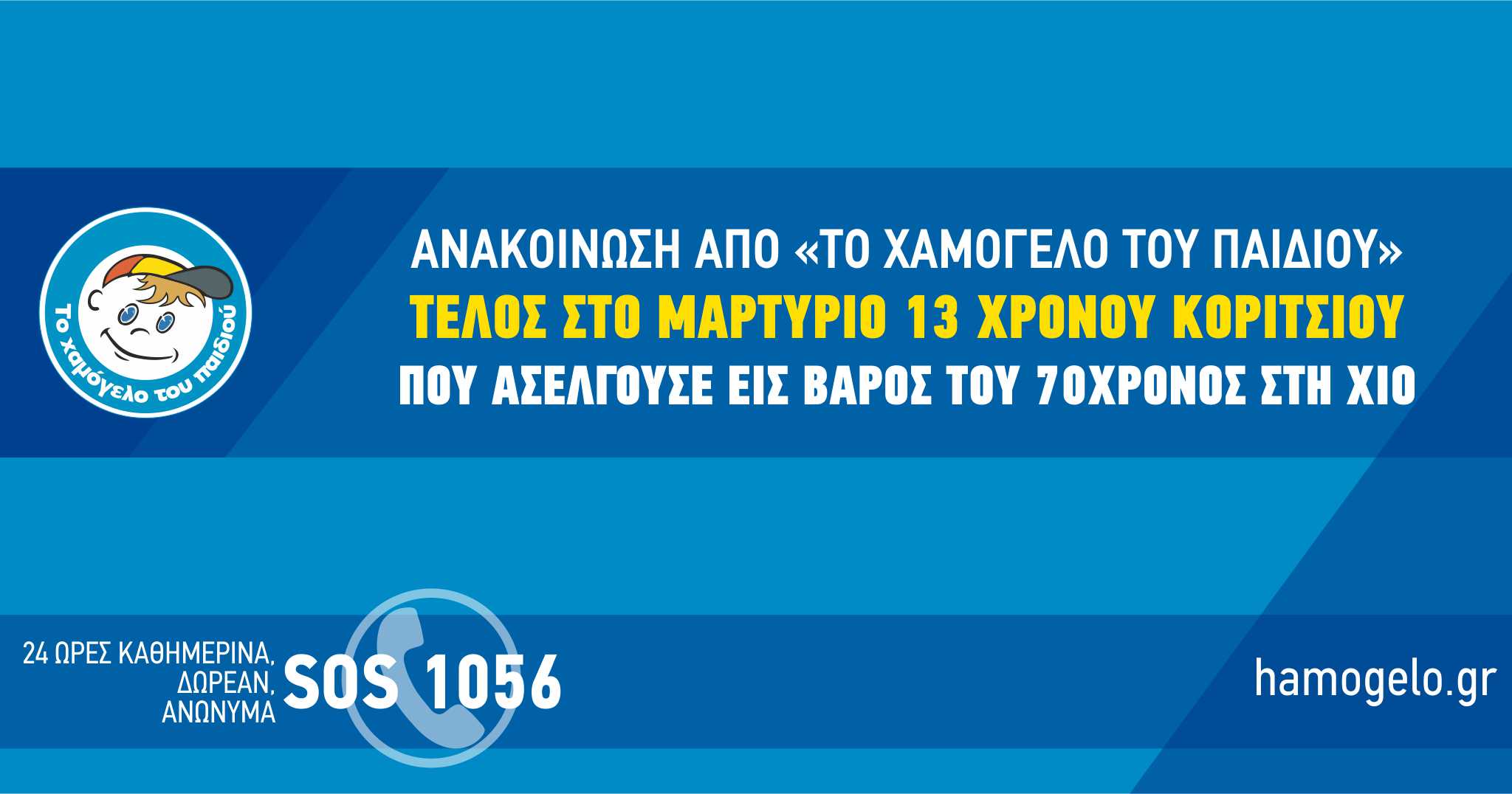 ΑΝΑΚΟΙΝΩΣΗ ΑΠΟ «ΤΟ ΧΑΜΟΓΕΛΟ ΤΟΥ ΠΑΙΔΙΟΥ»: ΤΕΛΟΣ ΣΤΟ ΜΑΡΤΥΡΙΟ 13 ΧΡΟΝΟΥ ΚΟΡΙΤΣΙΟΥ ΠΟΥ ΑΣΕΛΓΟΥΣΕ ΕΙΣ ΒΑΡΟΣ ΤΟΥ, 70ΧΡΟΝΟΣ ΣΤΗ ΧΙΟ