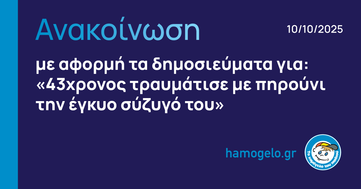 Ανακοίνωση με αφορμή τα δημοσιεύματα για «43χρονος τραυμάτισε με πηρούνι την έγκυο σύζυγό του»