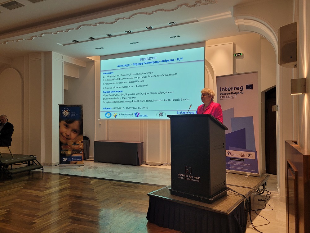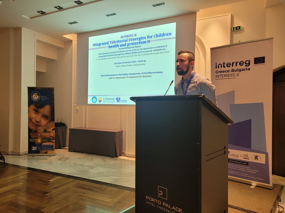 Τα ανωτέρω, παρουσιάστηκαν και συζητήθηκαν στην εκδήλωση παρουσίασης των αποτελεσμάτων του έργου INTERSYC ΙΙ, που πραγματοποιήθηκε τη Δευτέρα 12 Ιουνίου 2023, στη Θεσσαλονίκη από «Το Χαμόγελο του Παιδιού». Οι εν λόγω δράσεις υλοποιήθηκαν από τους εταίρους του έργου, Foundation “Center Nadja”- Sandanski Branch - Βουλγαρία, το Regional Department of Education - Blagoevgrad – Βουλγαρία, τον Αναπτυξιακό Οργανισμό Τοπικής Αυτοδιοίκησης Ανώνυμη Εταιρεία Κ. ΚΑΡΑΘΕΟΔΩΡΗ, καθώς και τον επικεφαλή εταίρο, «Το Χαμόγελο του Παιδιού», παράλληλα με ενέργειες που αποσκοπούν στη βελτίωση των υπηρεσιών υγείας και κοινωνικής φροντίδας για τα παιδιά σε διασυνορειακό επίπεδο Ελλάδας – Βουλγαρίας, σε μία ιδιαίτερα κρίσιμη υγειονομική περίοδο, που επιτάσσει τη συνεργασία και τη σύμπραξη δυνάμεων, για την αντιμετώπιση καίριων φαινομένων, που απειλούν την ευημερία των παιδιών.
