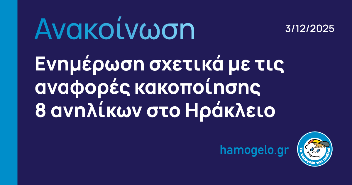 Ενημέρωση από «Το Χαμόγελο του Παιδιού» σχετικά με τις αναφορές κακοποίησης 8 ανηλίκων στο Ηράκλειο