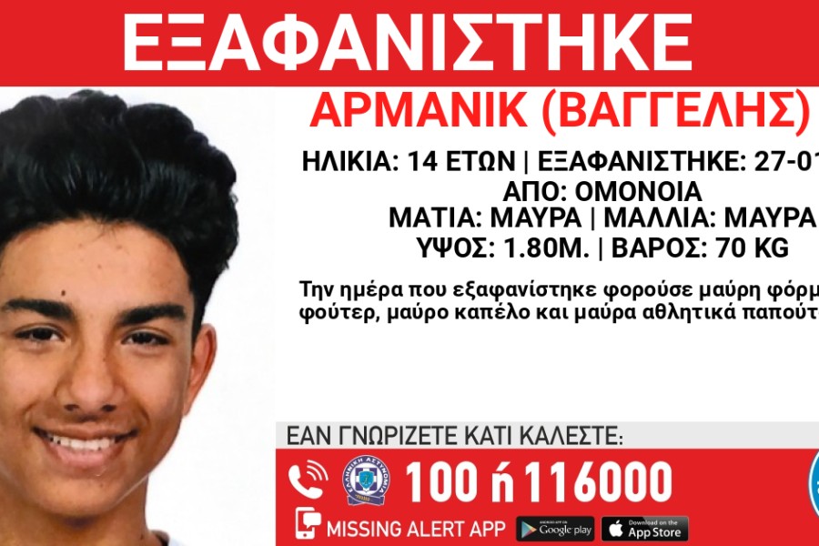 Κατόπιν εισαγγελικής εντολής που εκδόθηκε σήμερα 1/7/2023, το «Χαμόγελο του Παιδιού» προχώρησε άμεσα στην ενεργοποίηση του μηχανισμού AMBER ALERT HELLAS, καθώς υπάρχουν ενδείξεις που υποδεικνύουν ότι πιθανόν η ζωή του παιδιού βρίσκεται σε κίνδυνο.