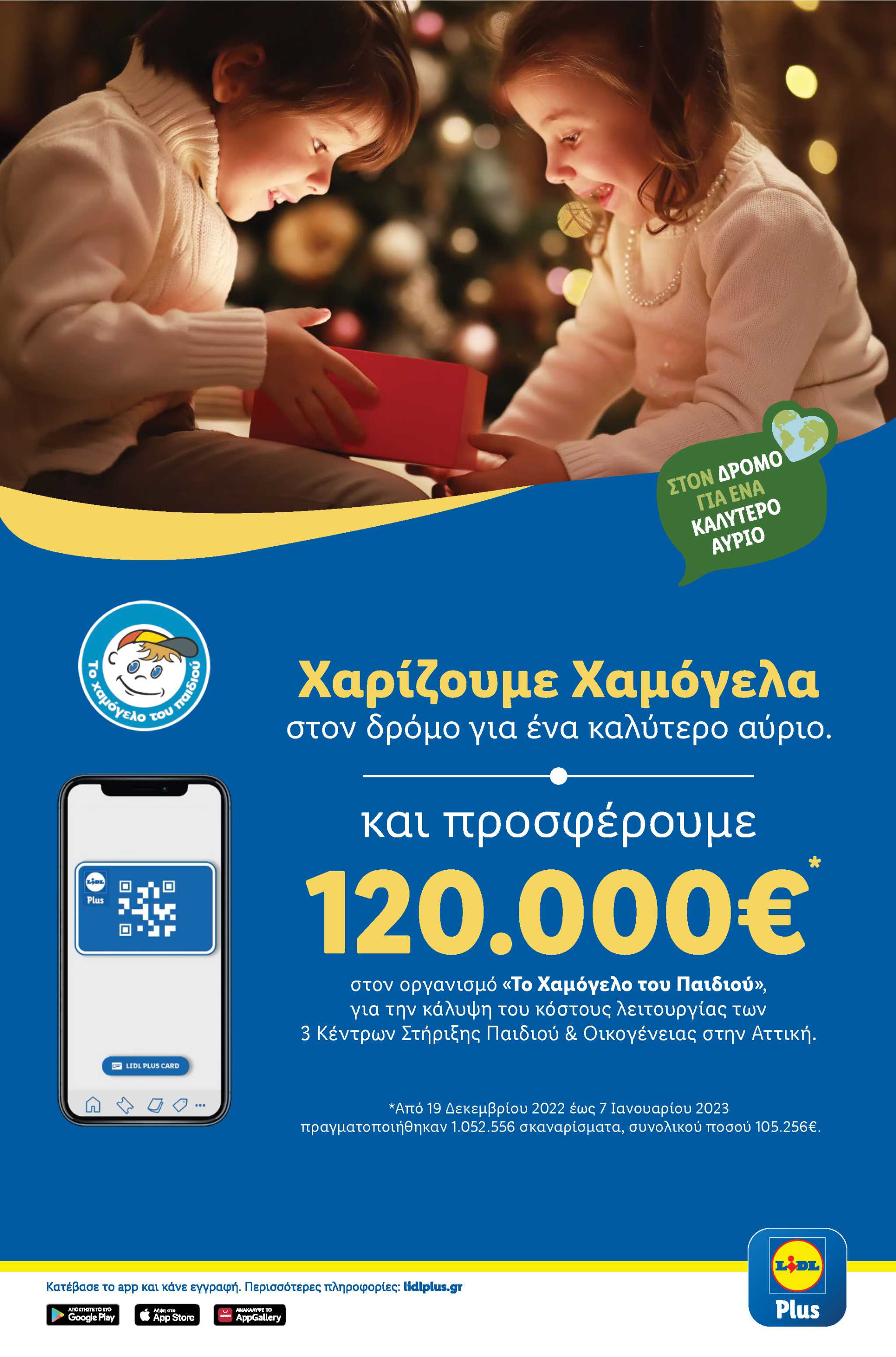 Από τις 19 Δεκεμβρίου και έως τις 7 Ιανουαρίου, με κάθε σκανάρισμα της ψηφιακής κάρτας Lidl Plus, προσέφερε 0,10€ στον Οργανισμό πραγματοποιώντας έτσι πάνω από 1.000.000 σκαναρίσματα, από τα οποία και συγκεντρώθηκε συνολικά το ποσό των 105.256 ευρώ. Ωστόσο, η εταιρεία προχώρησε στη δωρεά ενός πιο στρογγυλεμένου ποσού, γιατί τα χαμόγελα ποτέ δεν είναι αρκετά.