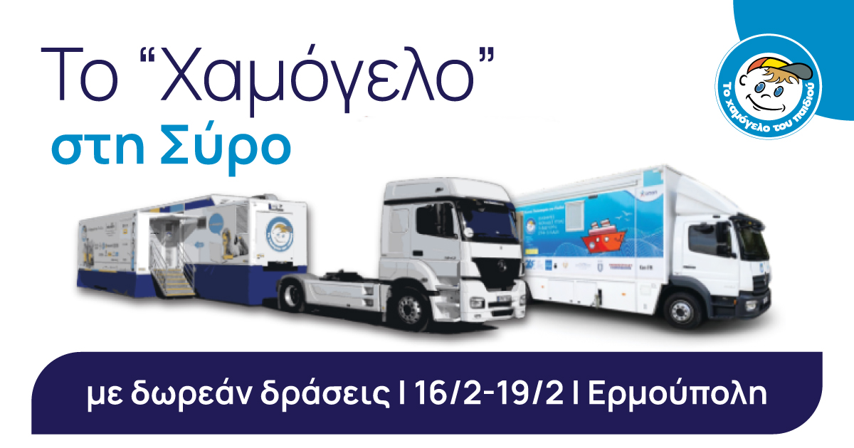 «Το Χαμόγελο του Παιδιού» σε συνεργασία με τον Δήμο Σύρου-Ερμούπολης, θα βρεθεί από 16 έως 19 Φεβρουαρίου 2026 στη Σύρο (Ερμούπολη, χώρος στάθμευσης του Αθλητικού Κέντρου «Δημήτριος Βικέλας»), με το σύνολο των εξειδικευμένων κινητών Μονάδων του και το επιστημονικό προσωπικό του για να παρέχει δωρεάν υπηρεσίες στα παιδιά, τις οικογένειες και όλους τους πολίτες του Δήμου.