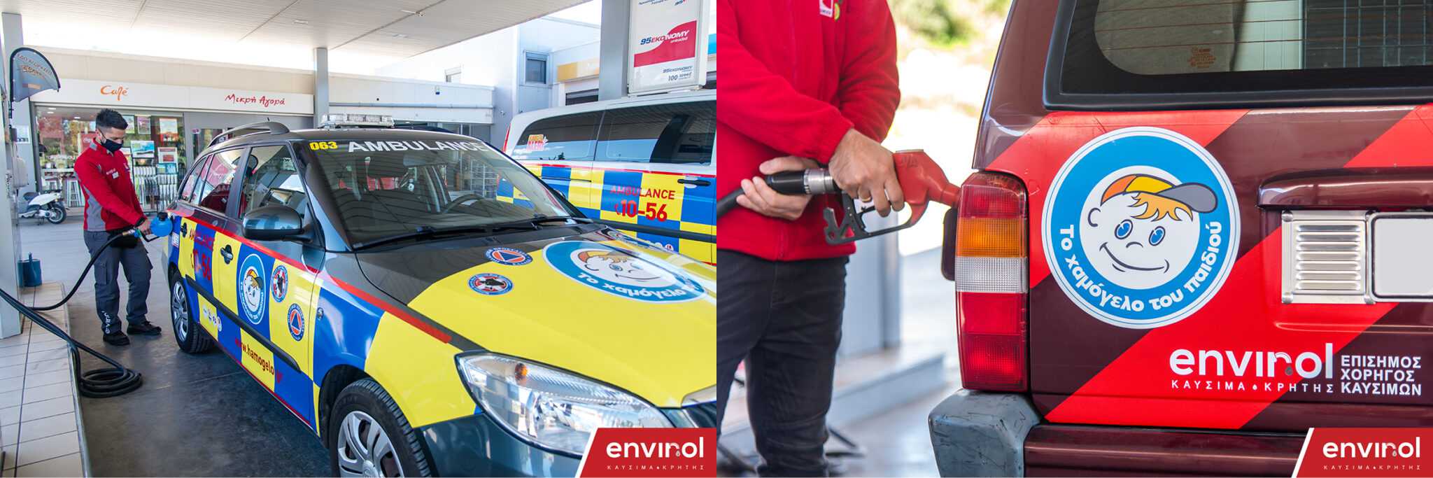 Συγκεκριμένα πέντε αυτοκίνητα θα τροφοδοτούνται πλήρως από την εταιρία Envirol Καύσιμα Κρήτης την οποία ευχαριστούμε από καρδιάς όπως και τον κύριο Γιάννη Μαυράκη ιδιοκτήτη της εταιρίας που έμπρακτα και ουσιαστικά φροντίζει να στηρίζει το έργο μας.