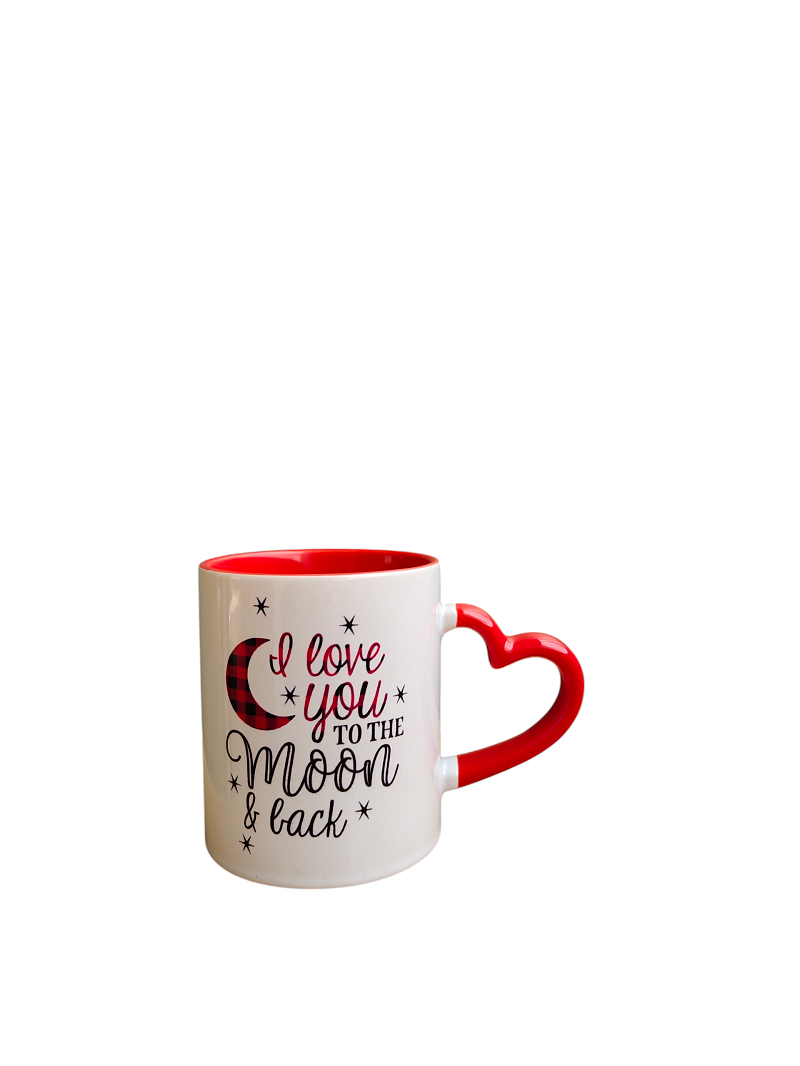 Πορσελάνινη κούπα Αγίου Βαλεντίνου με χερούλι σε σχήμα καρδιάς. Περιμετρική εκτύπωση. Χρωματιστή εσωτερικά σε κόκκινη απόχρωση.