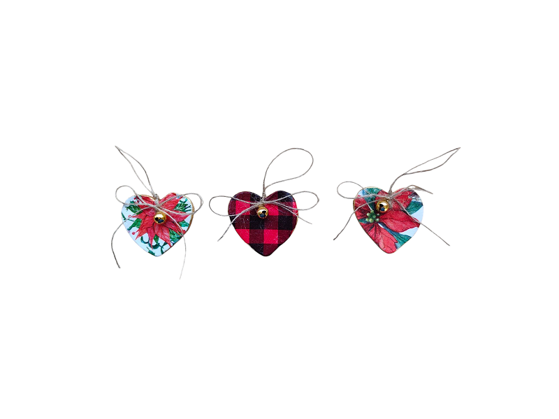 Χειροποίητα πήλινες καρδιές, στολίδια για το δέντρο. Σετ τριών τεμαχίων. Διατίθεται σε κουτάκι. Δημιουργία της ομάδας του Εθελοντικού Εργαστηρίου του Οργανισμού μας.