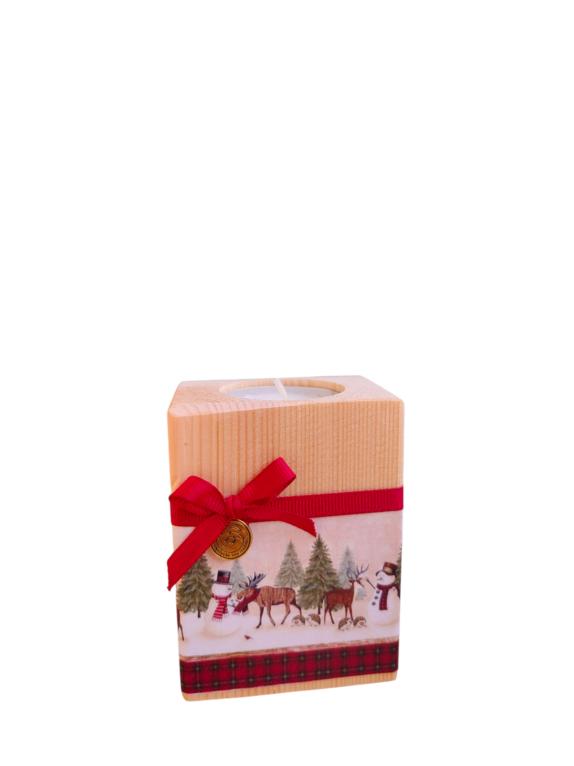 Ξύλινο ρεσώ με ντεκουπάζ χριστουγεννιάτικο μοτίβο, διακοσμημένο με μπορντώ κορδέλα, φιόγκο και κρεμαστό χρυσό μεταλλικό στοιχείο του Οργανισμού. Διατίθεται σε μπορντώ πουγκί. Δημιουργία της ομάδας του Εθελοντικού Εργαστηρίου του Οργανισμού μας.
