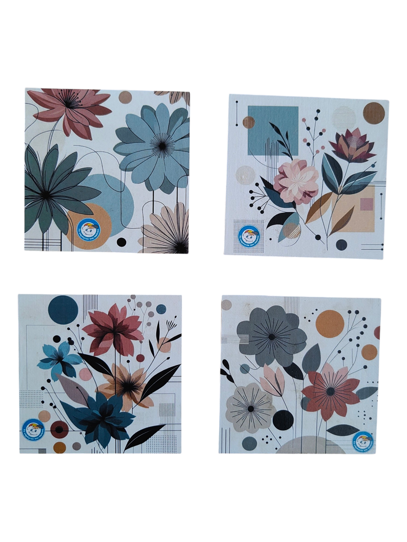 Σετ Σουβέρ Ξύλινα Λουλούδια (4τμχ)