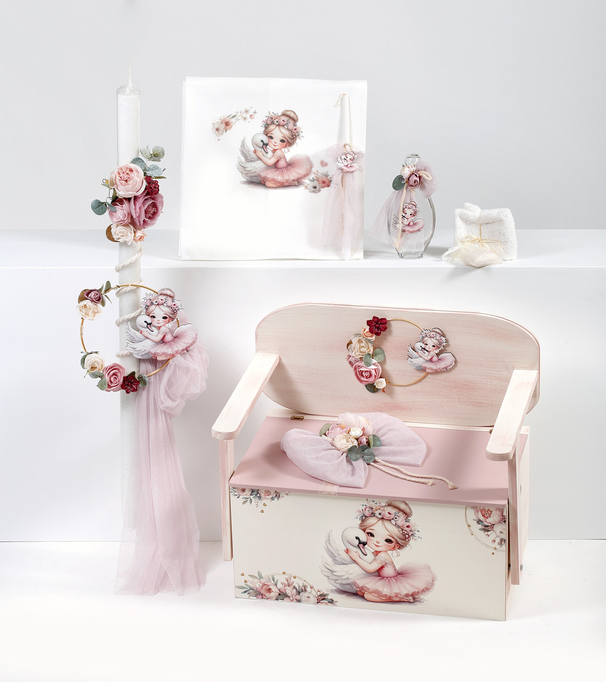 Σετ βάπτισης για κορίτσι με θέμα Κοριτσάκι με κύκνο.