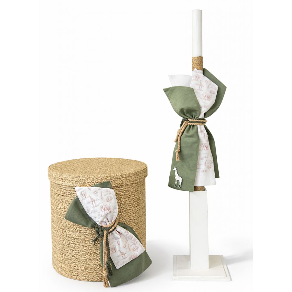 Σετ βάπτισης με ψάθινη καλάθι με θέμα Ζούγκλα.