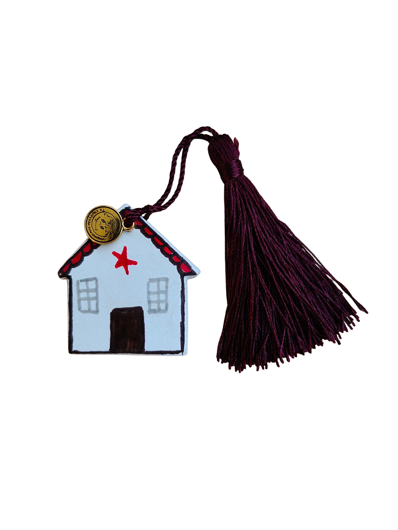 Χειροποίητο πήλινο σπιτάκι, διακοσμημένο με φούντα και μεταλλικό λογότυπο του Οργανισμού. Διατίθεται σε κουτάκι δώρου. Δημιουργία της ομάδας του Εθελοντικού Εργαστηρίου του Οργανισμού μας.