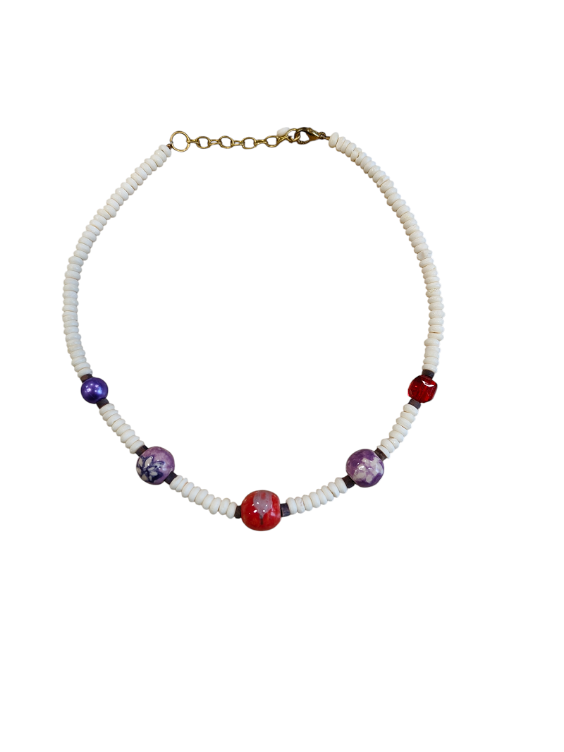Χειροποίητο κολιέ με διάφορες χάντρες. Δημιουργία της ομάδας του Εθελοντικού Εργαστηρίου του Οργανισμού μας.