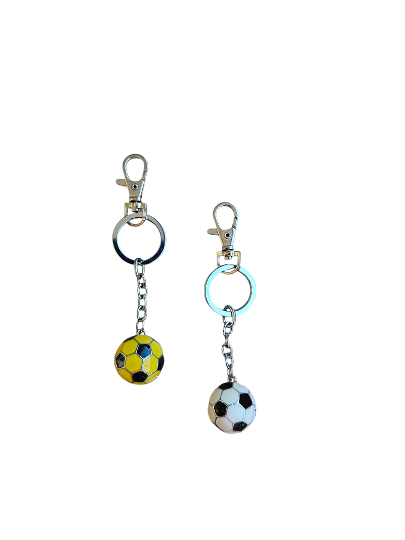 Μπρελόκ μπάλα ποδοσφαίρου, δεμένο σε μεταλλικό ασημί κρίκο και γάντζο. Διατίθεται σε κουτί δώρου. Δημιουργία της ομάδας του Εθελοντικού Εργαστηρίου του Οργανισμού μας.
