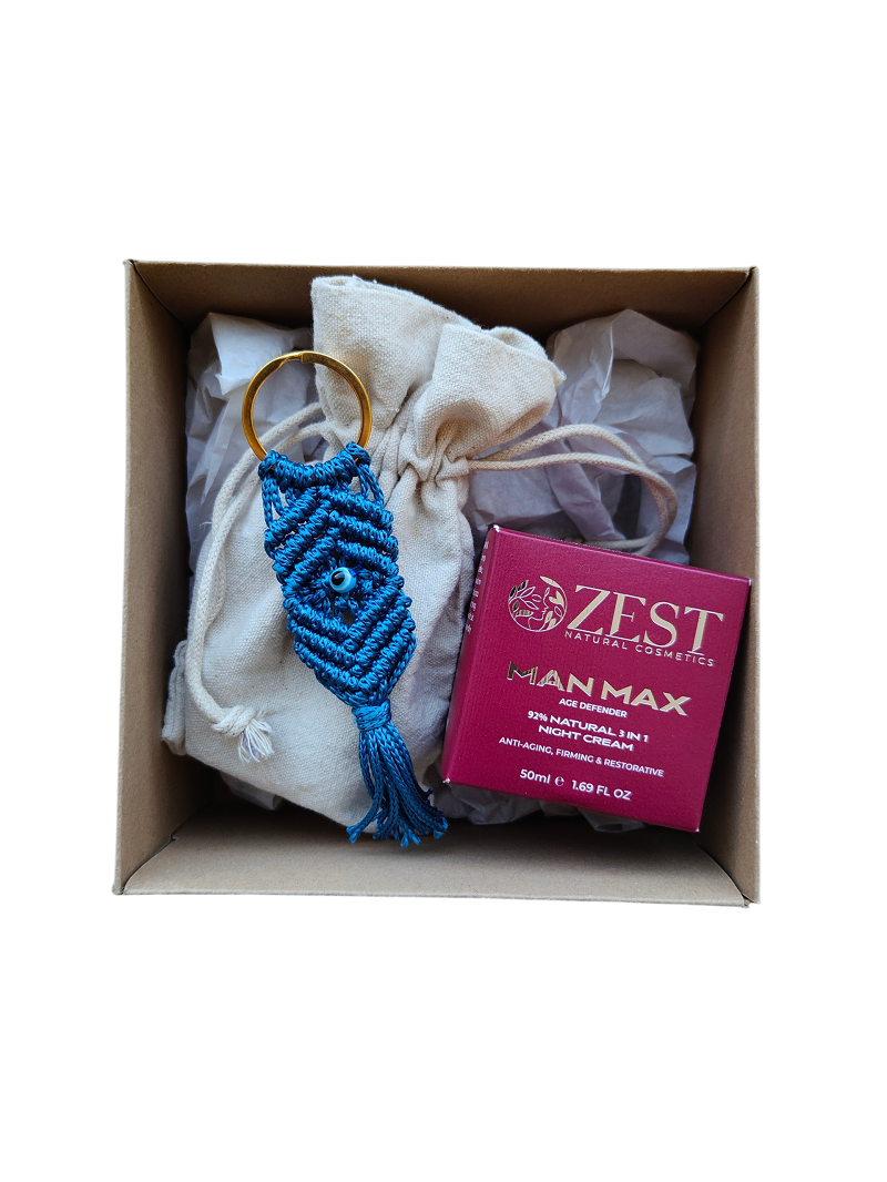 -Man Max Age Defender 92% φυσική κρέμα νυκτός 3 σε 1. Μια ολοκληρωμένη φυσική συνταγή, ειδικά σχεδιασμένη για να αναδομεί, να τονώνει και να ενυδατώνει την ανδρική επιδερμίδα στο μέγιστο. Με εκχυλίσματα τσουκνίδας, ιπποφαούς, αμαμελίδας, αλθαίας και χαμομηλιού περιέχει πλούσια επανορθωτικά, συσφικτικά και καταπραϋντικά στοιχεία. Ενισχυμένη με βούτυρο καριτέ, έλαιο αβοκάντο και ελαιο Jojoba, προσφέρει ελαστικότητα, ισορροπία και θρέψη σε βάθος. Τα αιθέρια έλαια λεβάντας, γκρέιπφρουτ, τεϊόδεντρου και μανταρινιού ολοκληρώνουν τη σύνθεση και χαρίζουν αντιφλεγμονώδης και αντισηπτική δράση συνοδευόμενη από ένα διακριτικά αρρενωπό άρωμα. 50ml  (προσφορά της εταιρείας Φυσικών καλλυντικών ΖΕST)