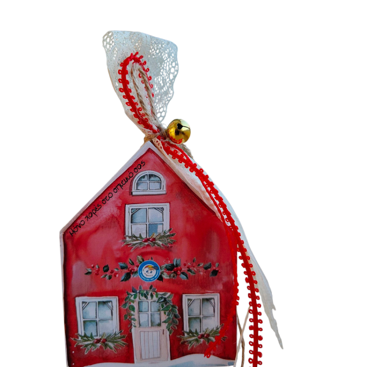 Γούρι Ξύλινο Σπιτάκι "Μόνο Χαρές Στο Σπιτικό σας"