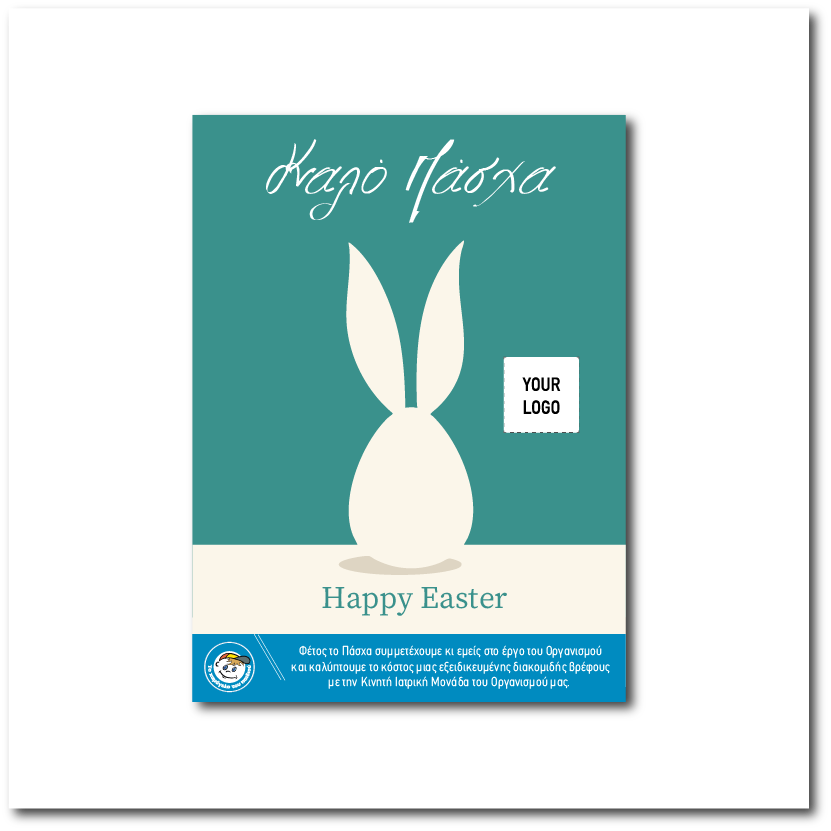 Και φέτος το Πάσχα, ευχηθείτε στους συνεργάτες σας με την ηλεκτρονική Πασχαλινή κάρτα του Οργανισμού. Στην ηλεκτρονική πασχαλινή κάρτα μπορεί να αποτυπωθεί το λογότυπό σας και μία φράση η οποία αποτυπώνει τις δράσεις μας αλλά και τις ανάγκες των παιδιών που εκπροσωπούμε.