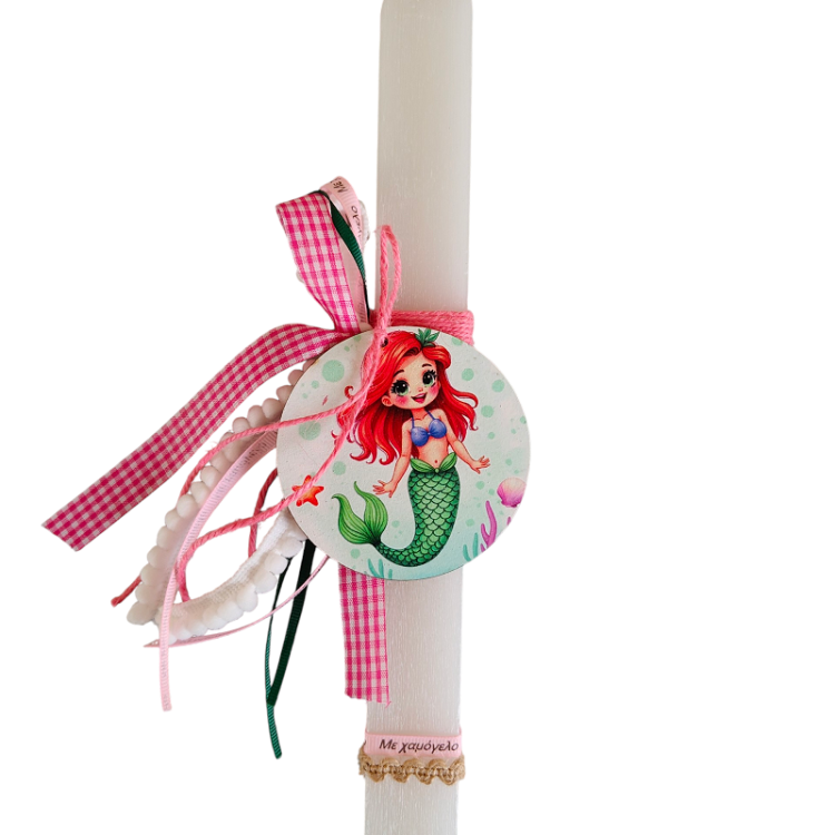 Πασχαλινή λαμπάδα Με Ξύλινο Διακοσμητικό Γοργόνα