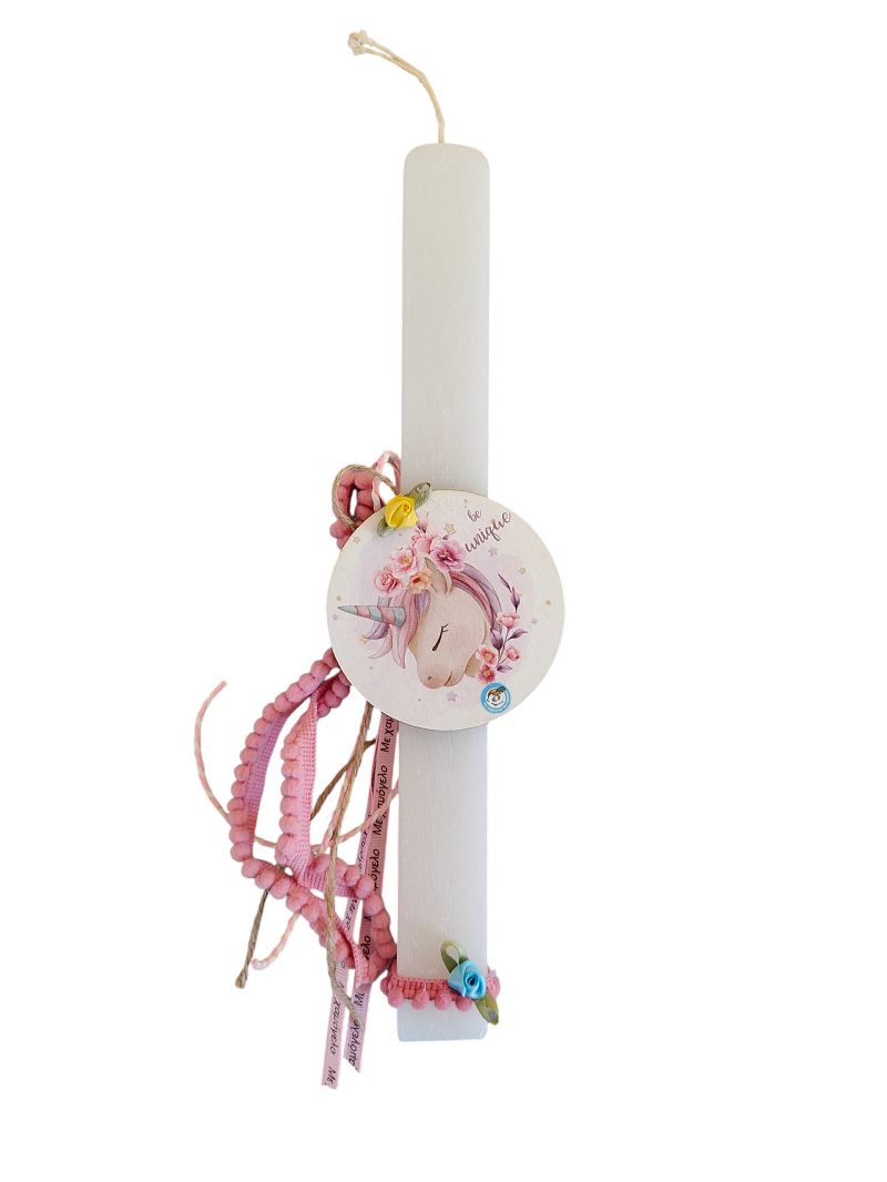 Πασχαλινή λαμπάδα Με Ξύλινο Διακοσμητικό Μονόκερος