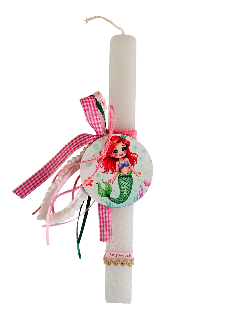 Πασχαλινή λαμπάδα Με Ξύλινο Διακοσμητικό Γοργόνα