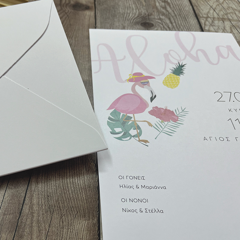Προσκλητήριο Βάπτισης Φλαμίνγκο Aloha SB041