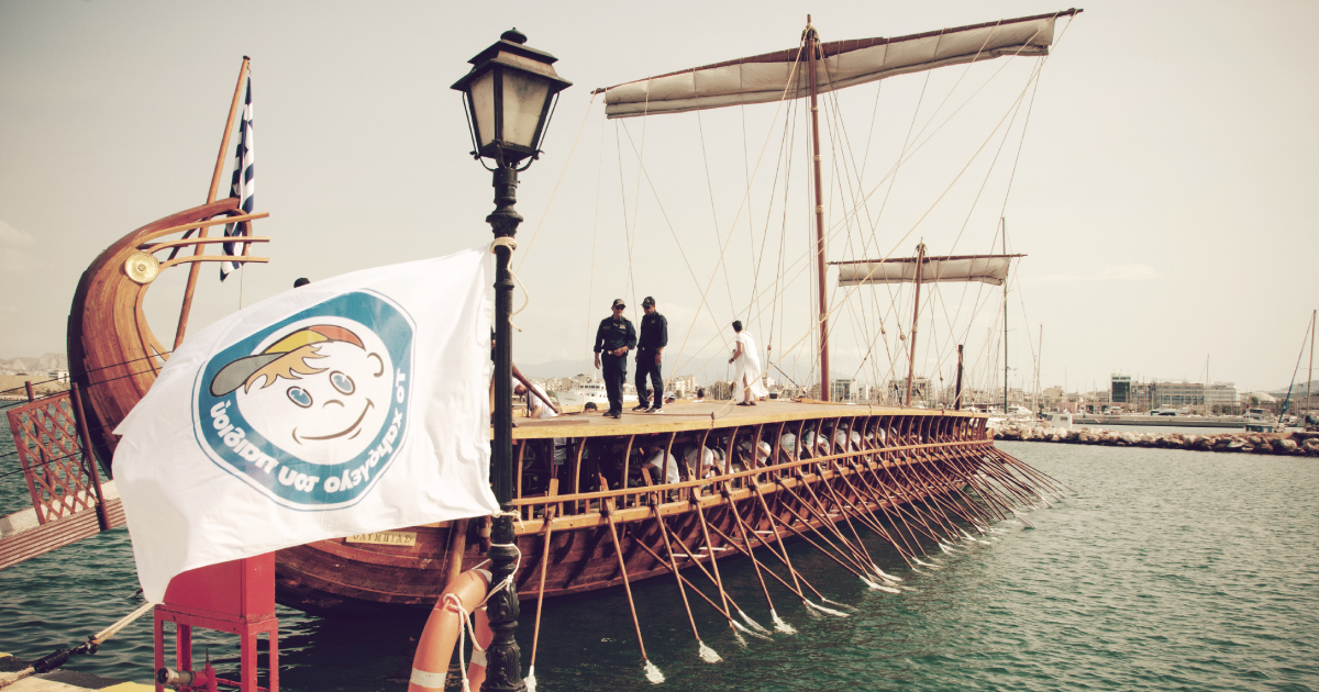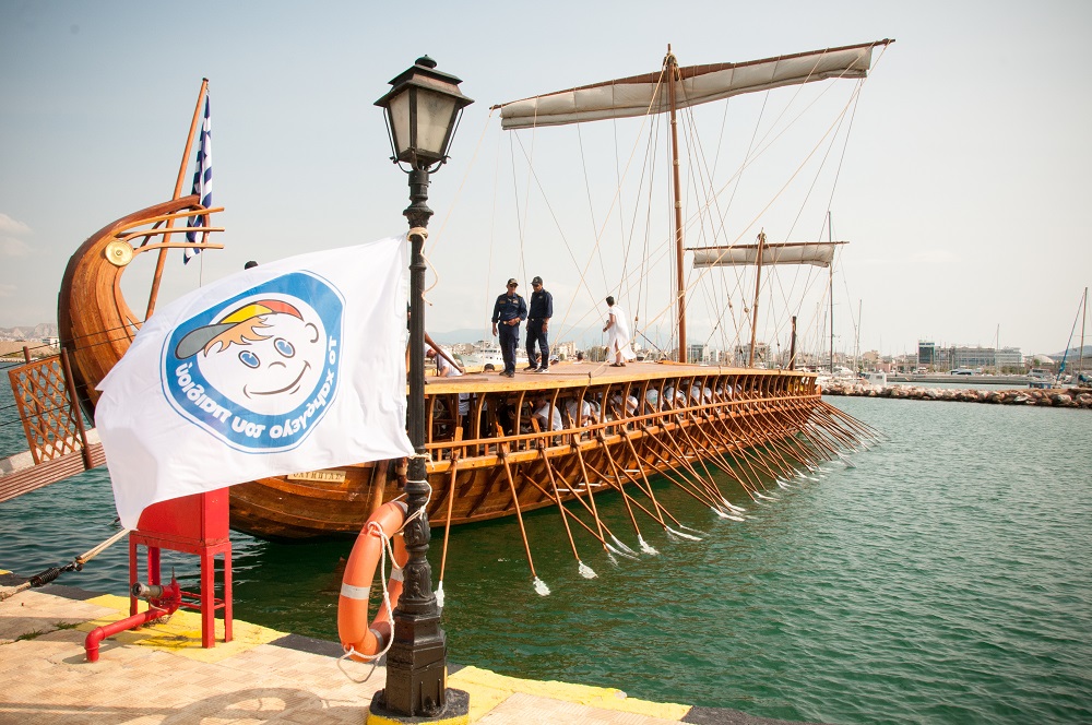 Με σύνθημα «Τραβάμε κουπί με “Το Χαμόγελο του Παιδιού” για το Χαμόγελο κάθε παιδιού!», σε μια δράση με έντονο τον ανθρώπινο χαρακτήρα και τη στήριξη τόσο σε φυσικό όσο και συναισθηματικό επίπεδο, την Παρασκευή 30 Ιουνίου διοργάνωσε μία συμβολική δράση κωπηλασίας με την Τριήρη «ΟΛΥΜΠΙΑΣ», το μοναδικό πιστό και λειτουργικό αντίγραφο της Αθηναϊκής Τριήρους του 5ου αιώνα π.Χ. που αποτελεί σύμβολο ελευθερίας και τιμής, σε συνεργασία με το Γενικό Επιτελείο Ναυτικού και το Υπουργείο Εθνικής Άμυνας.